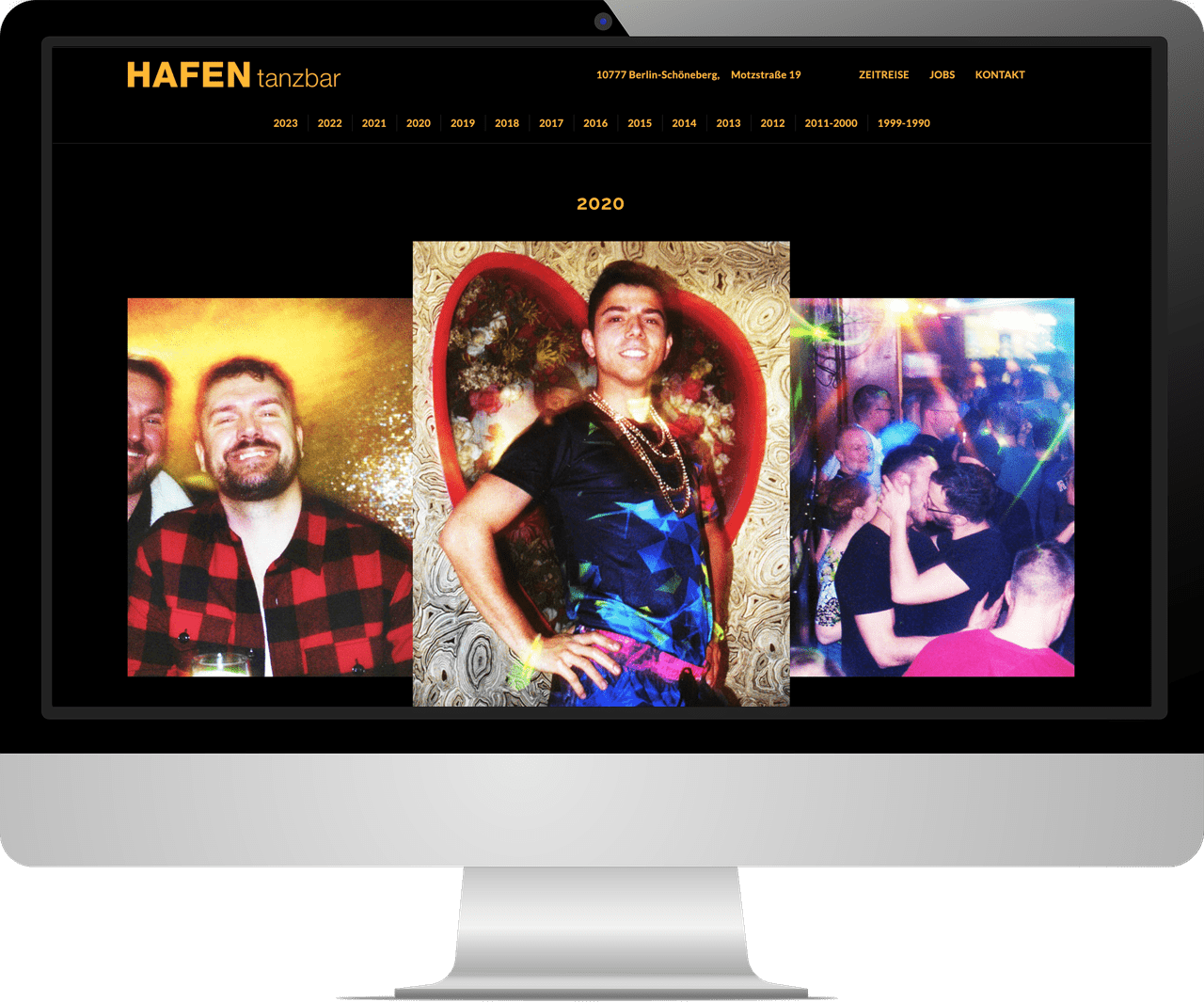 Für die Tanzbar HAFEN in der Motzstraße Berlin-Schöneberg erstellte ich 2020 die neue Webseite. Aufgrund des geänderten Nutzerverhaltens ist die Website speziell für mobile Geräte optimiert. Dementsprechend sind alle 30 Bildergalerien für 30 Jahre ebenso in einer Mobil-Version vorhanden.
